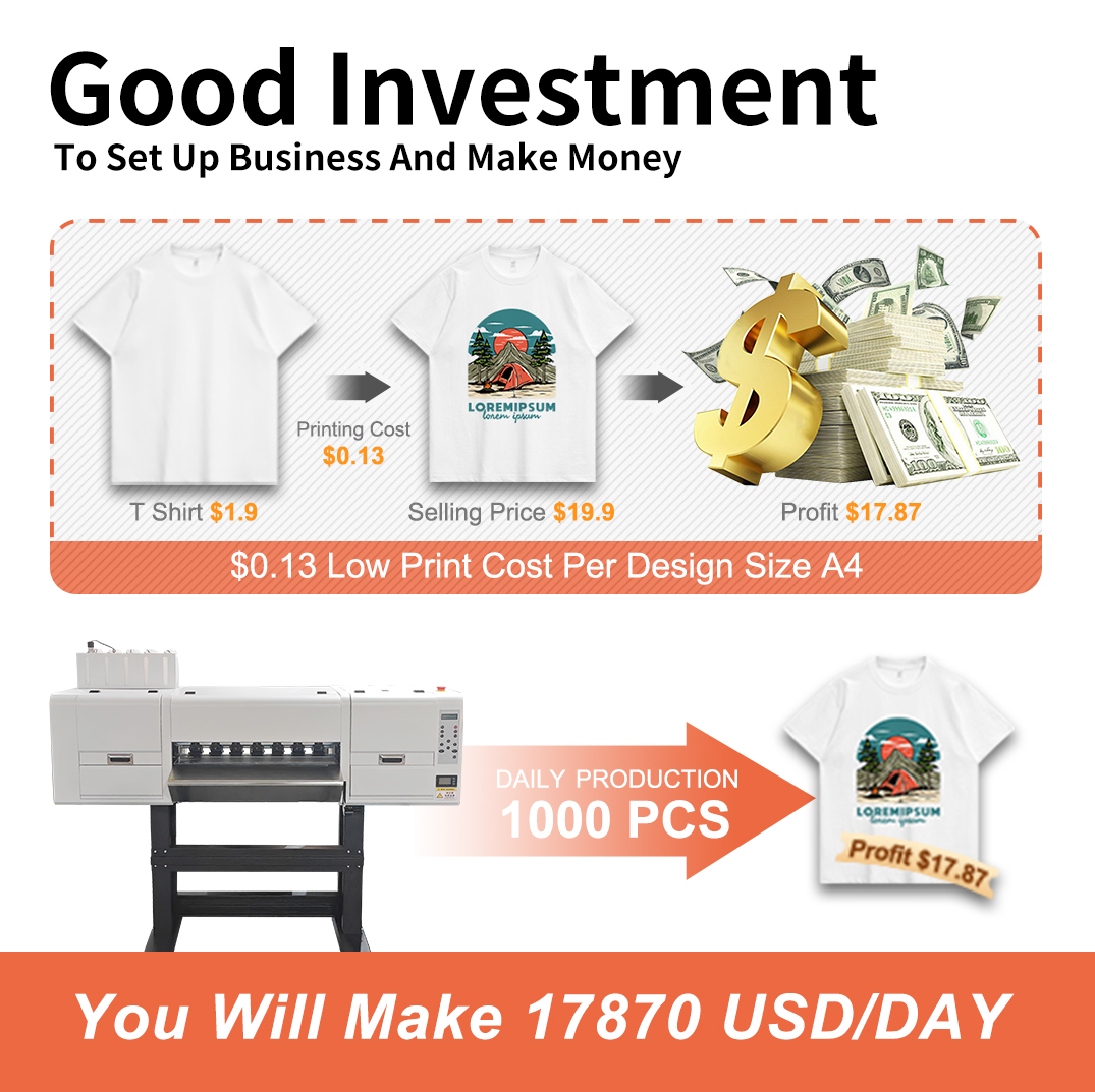 白墨打印机60cm A1 Heads DTF Printer Heat Transfer All-in-One Inkjet Print Machine for Fabric/T-Shirt Professional