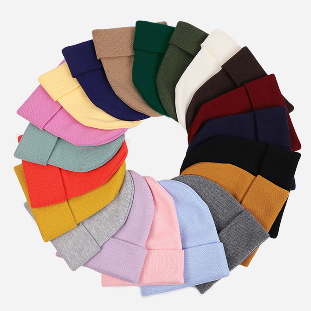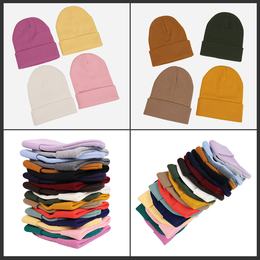 秋冬保暖帽子光面针织帽男女防风腈纶冷帽加厚护耳毛线帽Autumn Winter Warm Hat with Windproof Thickened Ear Protection Skull Cap