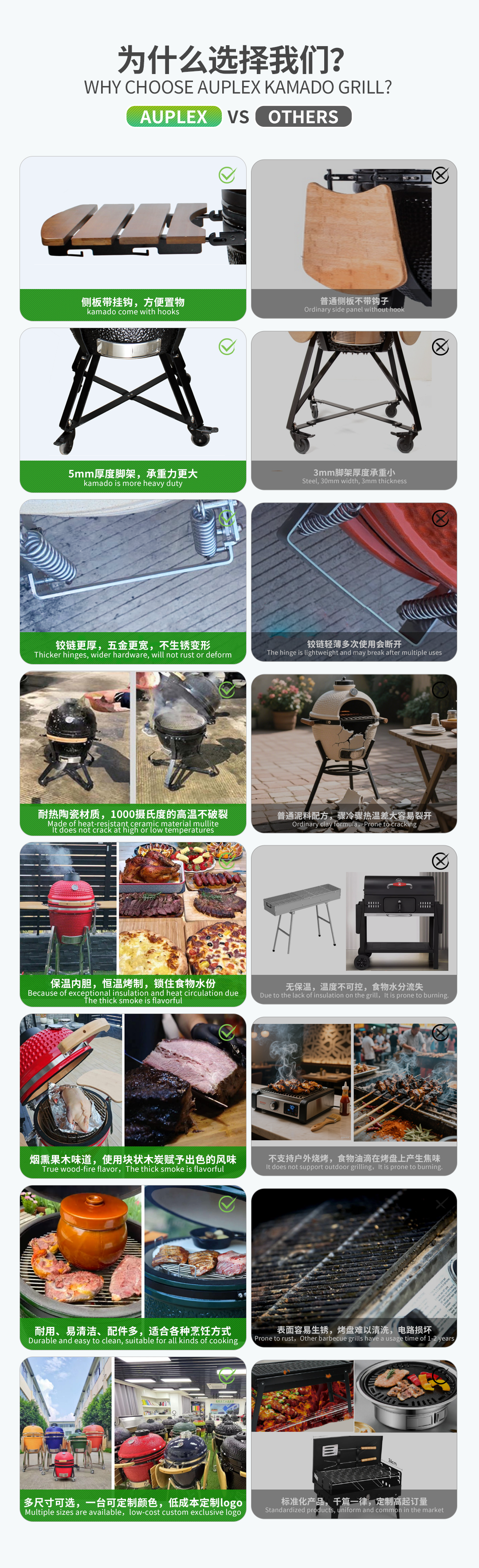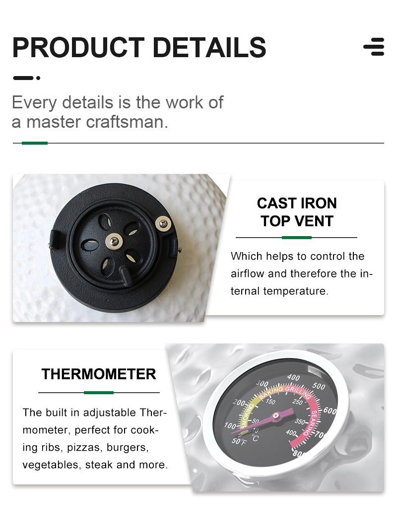 Auplex factory OEM Green Black Ceramic Big Joe Kamado Grill 21 27 29 Inch & Meat Smoker BBQ with Charcoal & Garden Outdoor